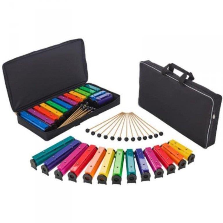 Zestaw 27-tonowy to komplet, który umożliwia zagranie bardzo szerokiego repertuaru, obejmującego dwie pełne oktawy wraz z półtonami. Idealnie sprawdzi się zarówno w edukacji muzycznej, jak i podczas animacji, warsztatów czy muzykoterapii.