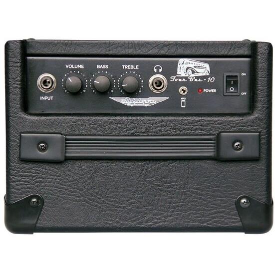 Wzmacniacz basowy typu combo z serii Tour Bus. Mały, doskonale brzmiący wzmacniacz idealny do codziennych ćwiczeń oraz dla początkujących muzyków. Moc: 10W. Głośnik: 1 x 6.5'. EQ – 3 Band: Volume, Treble, Bass. Gniazdo słuchawkowe. CD/MP3 input.