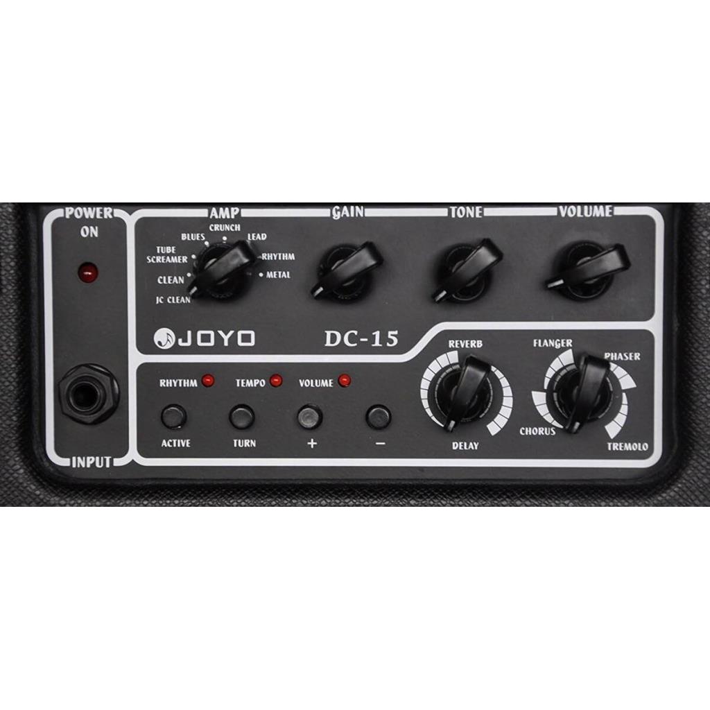 Joyo DC-15 - rewelacyjne combo gitarowe firmy Joyo, z wbudowanymi cyfrowymi efektami i rytmami. Przeznaczone zarówno dla początkujących gitarzystów jak i zaawansowanych, do ćwiczenia w domu i do gry na scenie. Jego zalety to bardzo małe wymiary, niska waga i niewiarygodnie znakomite brzmienie.