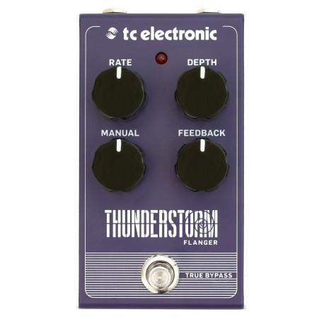 Thunderstorm Flanger doskonale oddaje klasyczne, analogowe brzmienia flanger z przeszłości. Od subtelnego, taśmowego przemiatania i bujnych chorusów po flangerowe szaleństwo bez hamulców. Thunderstorm robi to wszystko w gotowym znosić trudy trasy, a jednocześnie przystępnym cenowo opakowaniu, czyniąc flange’owanie za pomocą układu bucket-brigade dostępne dla każdego.