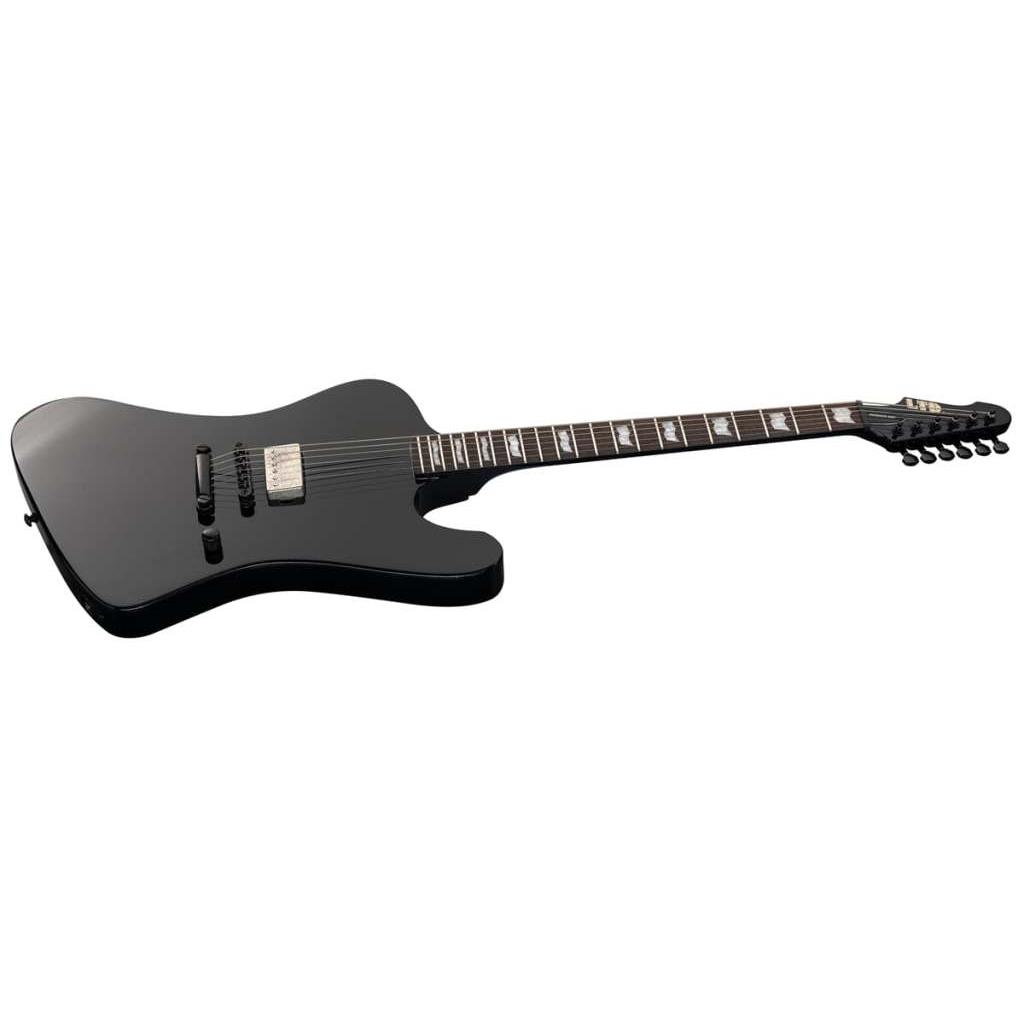 Gitara LTD Phoenix-201 w wykończeniu na wysoki połysk w kolorze czarnym ma konstrukcję typu set-neck o skali 25,5”, korpus z mahoniu i trzyczęściową szyjkę z mahoniu, podstrunnicę z palisandru, 22 progi extra-jumbo, czarny osprzęt, mostek i strunnik LTD oraz pojedynczy przetwornik ESP LH-150B przy mostku z osłoną z antycznego niklu i rozłączaniem cewek za pomocą sterowania push-pull.