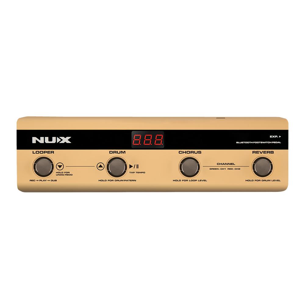 NUX STAGEMAN NMP-4 CONTROLLER to kontroler nożny zaprojektowany specjalnie dla wzmacniacza akustycznego NUX STAGEMAN. Uaktywnia ukryte funkcje urządzenia – looper i automat perkusyjny, a także zapewnia obsługę efektów Chorus i Reverb bez użycia rąk. Wystarczy włączyć oba urządzenia i sparować je za pomocą bluetooth