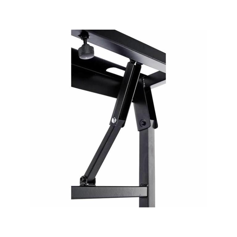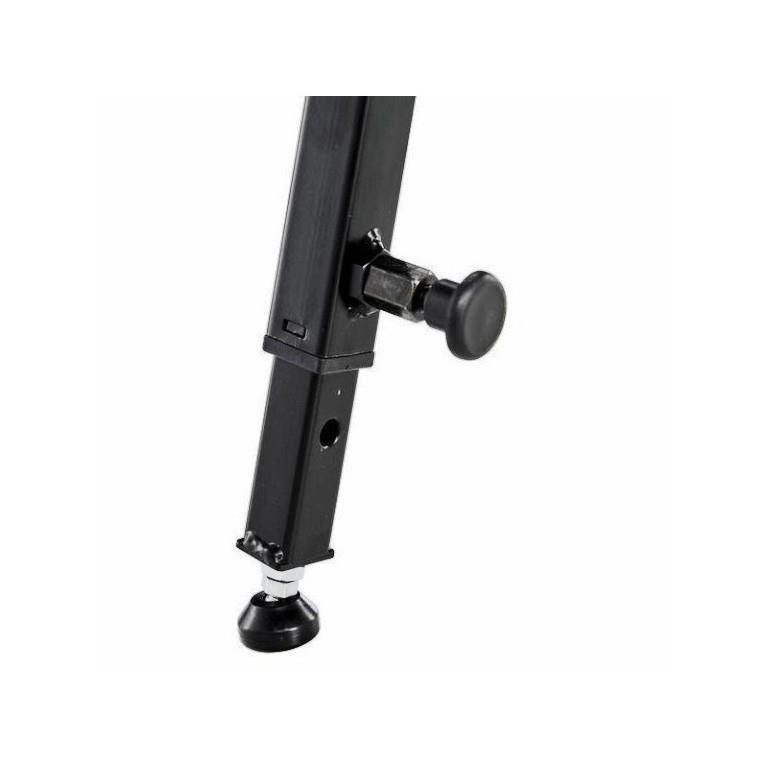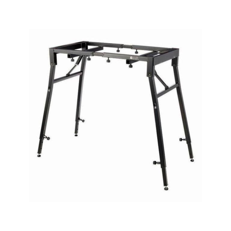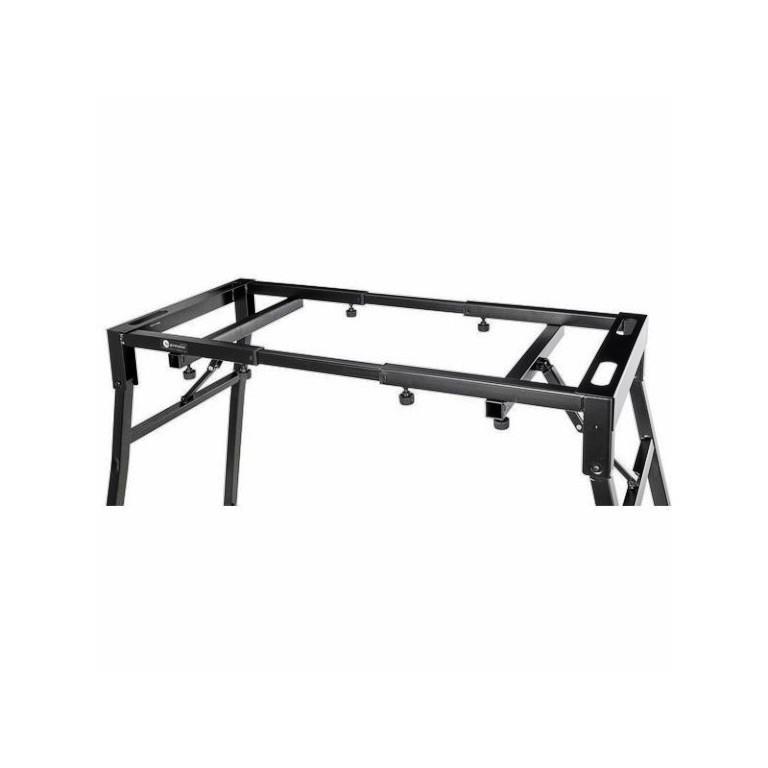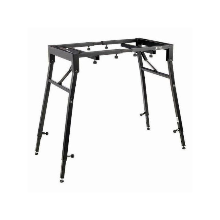 Solidny, uniwersalny statyw dla klawiszowca, DJ, tzw."deska do prasowania" można położyć na nim zarówno krótką klawiaturę jak również długie stage piano 88 klawiszowe. Bardzo wygodny gdyż mamy swobodne nogi i w przeciwieństwie do statywu typu X nic ich nie blokuje. Płynna regulacja wysokości na nogach i najwazniejsze szybko sie składa i rozkłada a zajmuje mniej miejsca niż standardowy X.