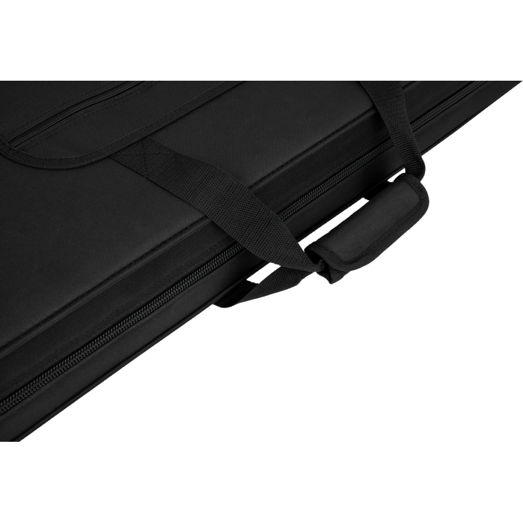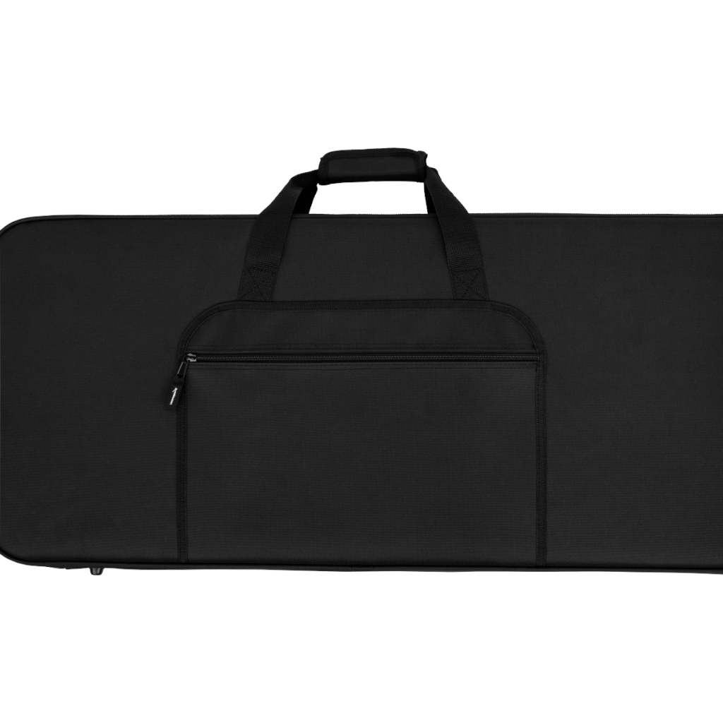 Wnętrze pokrowca zostało zaprojektowane z myślą o praktyczności. Obszerna komora na akcesoria umożliwia bezpieczne przechowywanie kostek, kabli, pasków, stroików i innych niezbędnych elementów wyposażenia gitarzysty. Wyściełany uchwyt z nylonu gwarantuje pewny i wygodny chwyt, natomiast regulowany, odpinany pasek na ramię pozwala na swobodne przenoszenie instrumentu w różnych sytuacjach – w drodze na próbę, koncert lub do studia. Metalowe elementy mocujące zwiększają trwałość i niezawodność całej konstrukcji.