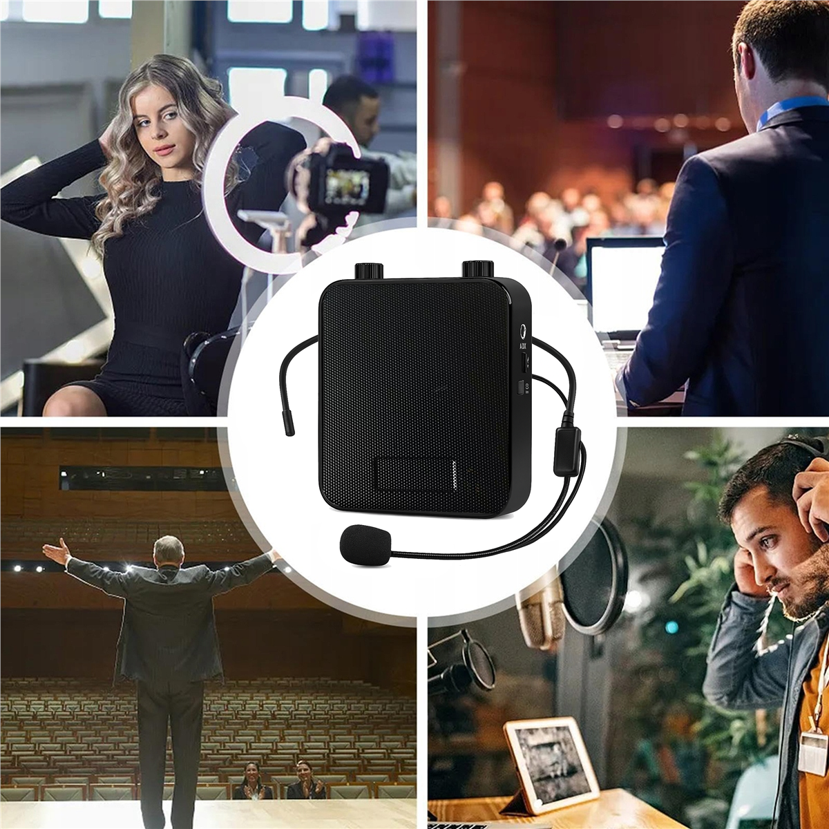 Moc wyjściowa 10 W RMS oraz pasmo przenoszenia 100–20000 Hz zapewniają czyste i wyraźne brzmienie zarówno mowy, jak i muzyki. Nagłowny mikrofon umożliwia naturalną gestykulację i komfortową pracę, a regulowany efekt echo pozwala dopasować brzmienie głosu do indywidualnych potrzeb.
