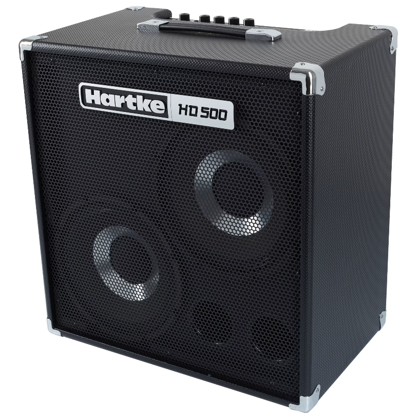Zestaw basowy HD500 zawiera parę opatentowanych przez Hartke głośników HyDrive o średnicy 10 cali z magnesami neodymowymi oraz wzmacniacz klasy D o mocy 500 W w smukłej, ważącej 35 funtów obudowie. Zapewnia wyjątkowe brzmienie basu podczas prób, sesji studyjnych i występów na żywo, zachowując jednocześnie przywiązanie Hartke do jakości i mobilności.
