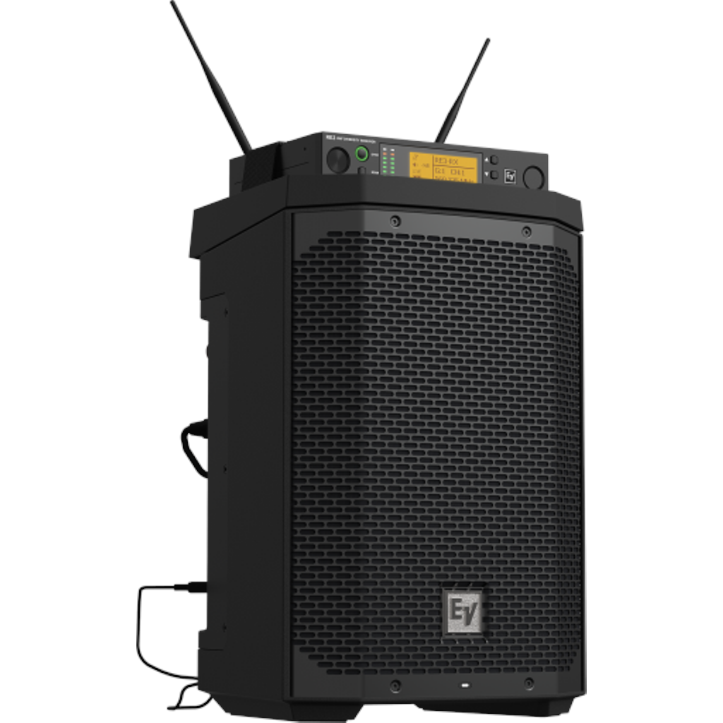 Zintegrowany port 12 V DC zapewnia wygodne zasilanie z akumulatora EVERSE 8, ułatwiając użycie mikrofonu bezprzewodowego. Można też wykorzystać opcjonalną półkę, która bezpieczne mocuje odbiornik bezprzewodowy na górze obudowy EVERSE 8. W przypadku konfiguracji stereo, system jest wyposażony w bezprzewodowe strumieniowanie stereo przez Bluetooth. Dostępny jest też port ładowania dla urządzeń mobilnych, gdy zachodzi potrzeba ich zasilania podczas streamingu muzyki. Liczne elastyczne w użyciu funkcje EVERSE 8 zapewniają łatwą konfigurację systemu od wejścia do wyjścia.