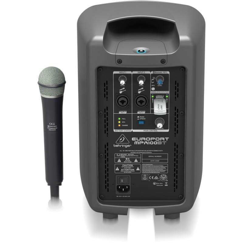 BEHRINGER MPA100BT to przenośny 100 watowy zestaw aktywny , z możliwością łączności Bluetooth oraz możliwośćią zasilania akumulatorowego.