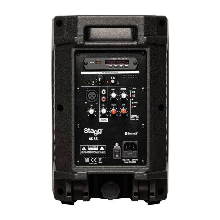Stagg AS 8B to kompaktowa dwudrozna kolumna aktywna z wbudowanym akumulatorem, stworzona jako mobilny zestaw naglosnieniowy typu all in one. Jest to mniejsza wersja modelu AS 10B, zaprojektowana z mysla o uzytkownikach, ktorzy potrzebuja lekkiego, latwego w transporcie systemu naglosnienia do prezentacji, szkol, zajec fitness, wydarzen plenerowych oraz mniejszych imprez okolicznosciowych.