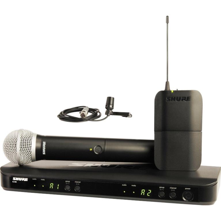Shure BLX1288 CVL PG58 H8E 518–542 MHz dwukanałowy system bezprzewodowy z mikrofonem ręcznym i lavalier