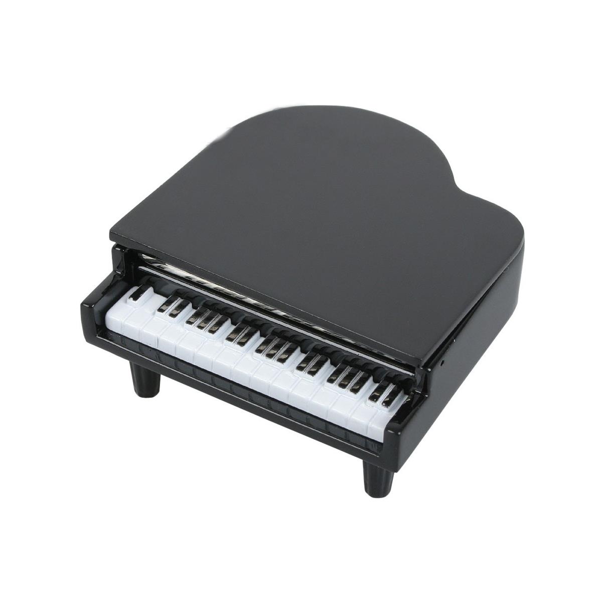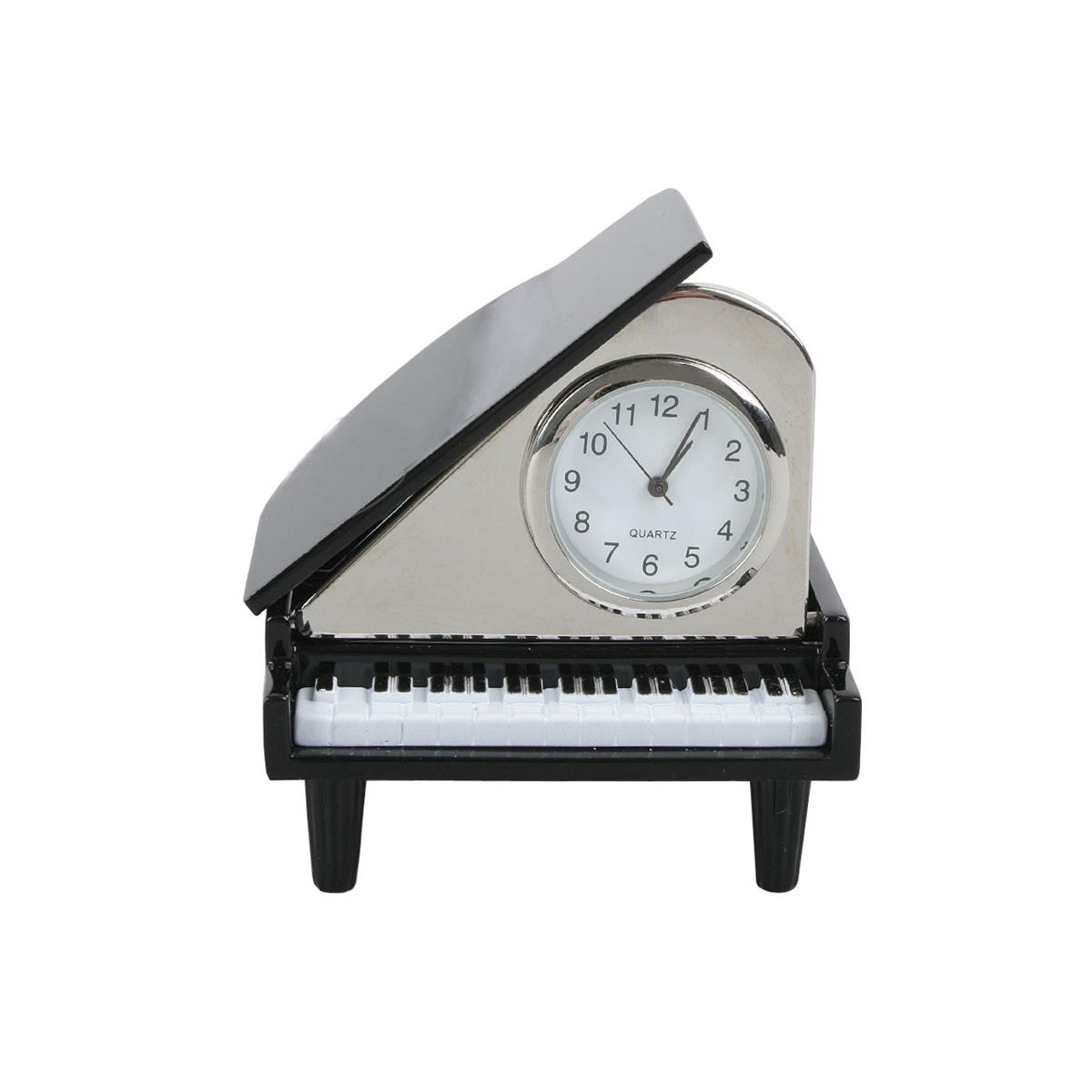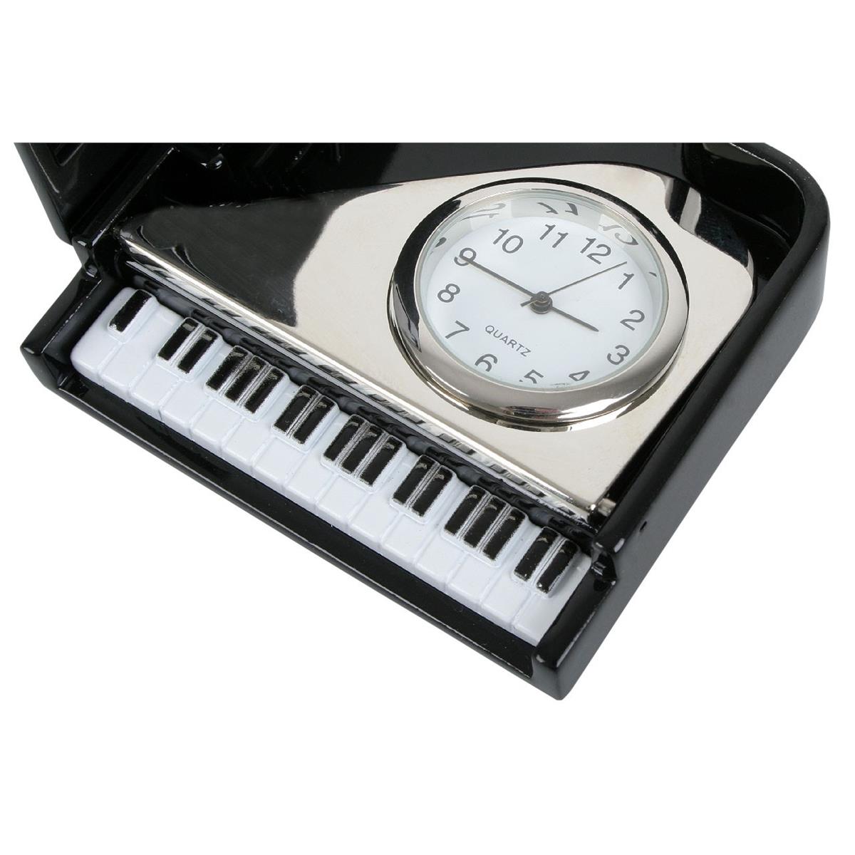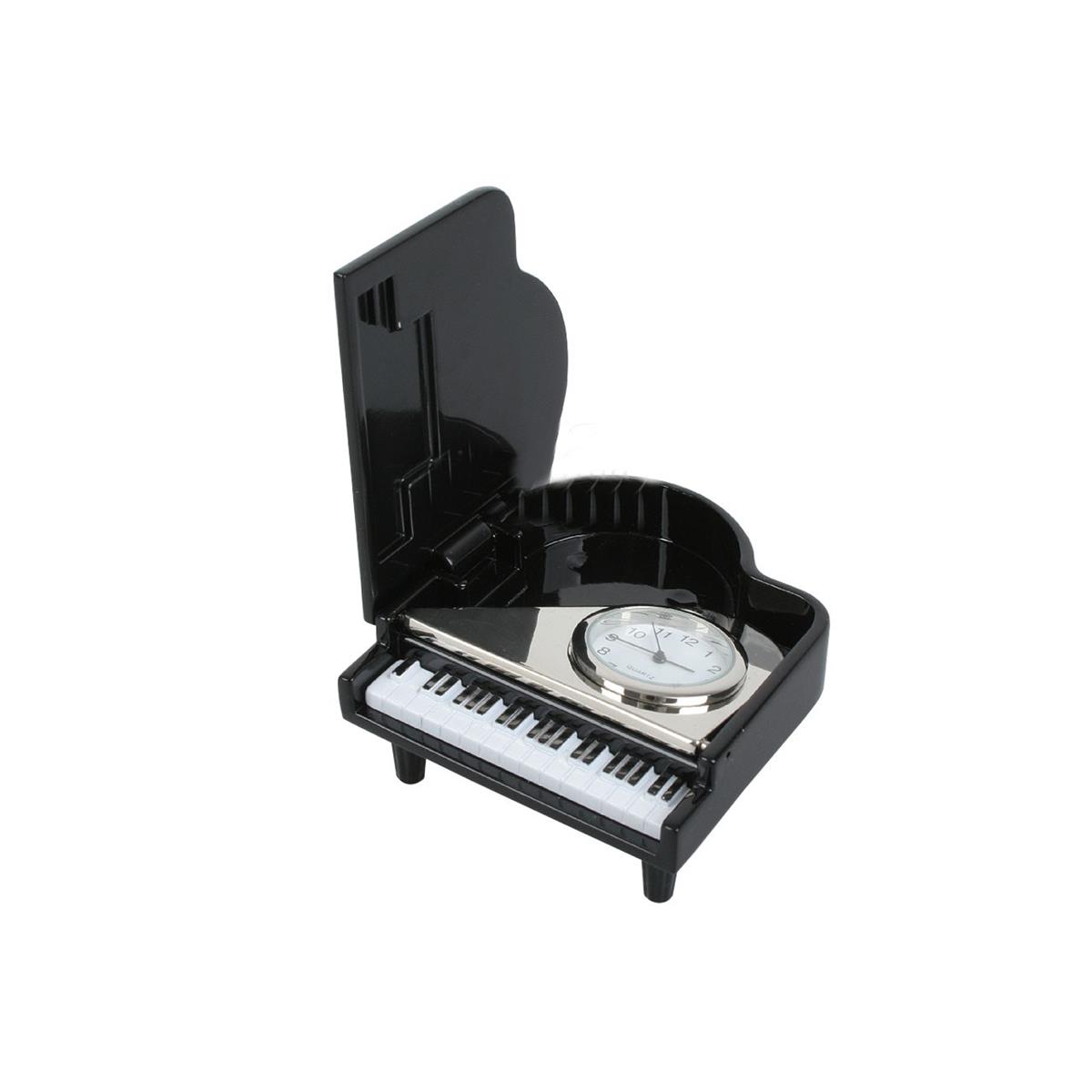 Miniatura fortepianu z zegarkiem. Obudowa metalowa. Znakomity prezent dla muzyka.