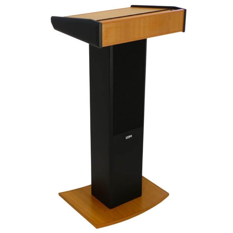 Na pulpicie mównicy znajdują się dwa gniazda do podłączenia mikrofonów z elastyczną „gęsią szyjką” oraz gniazdo zasilające lampkę LED, która umożliwia oświetlenie tekstu podczas wystąpienia. Dzięki temu prowadzący może pracować w każdych warunkach oświetleniowych i zachować pełen komfort.