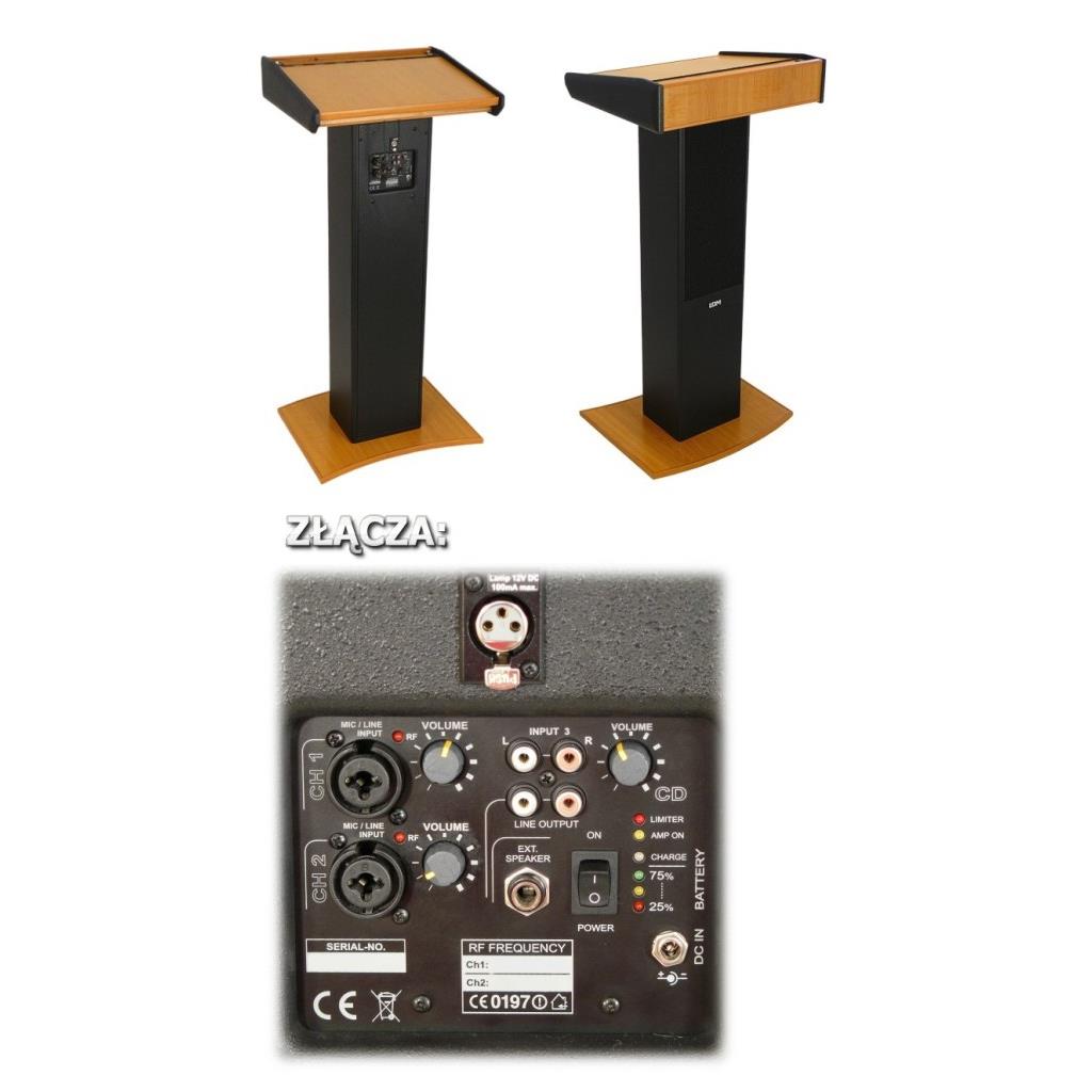 LEKTOR-100 – Aktywna mównica z mikserem, kolumną głośnikową i odbiornikiem mikrofonu bezprzewodowego