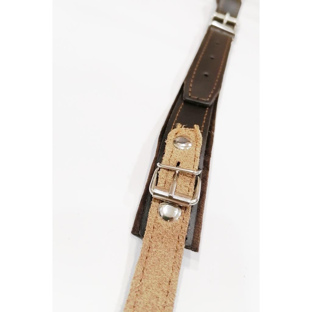 Skórzany pas do akordeonu 80 basów, posiadają regulowaną długość. Wewnętrzna strona jest wykonana z miękkiej poduszki podszytej materiałem podobnym do zamszu. Dzięki dbałości o dokładność wykonania oraz jakość użytych surowców pas jest bardzo wytrzymały oraz dodatkowo bardzo dobrze się prezentuje. Śzerokość: 5 cm
