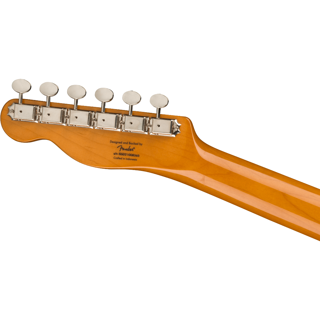 Gitara wyposażona została w wygodny gryf z klonu o profilu C oraz podstrunnicę z drewna Indian Laurel, która zapewnia komfortową akcję strun. Radius 9,5 cala oraz 21 progów typu Narrow Tall gwarantują łatwość gry zarówno akordowej, jak i solowej. Konstrukcja nawiązuje bezpośrednio do telecasterów z lat 60., co widać w detalach takich jak klasyczny mostek z trzema beczkowymi siodełkami, niklowany osprzęt oraz charakterystyczna estetyka retro.