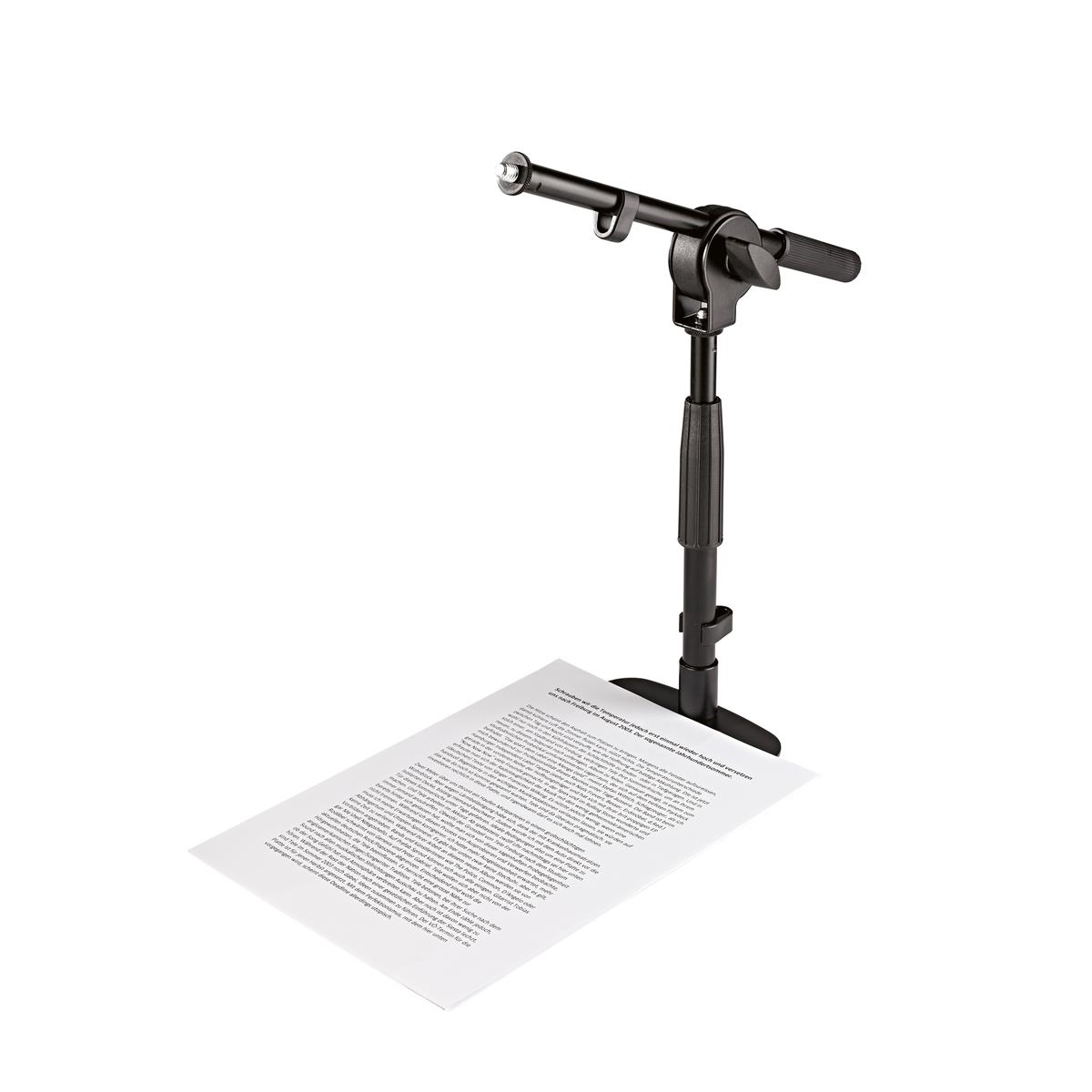 Ten użyteczny i wszechstronny stalowy statyw mikrofonowy zapewnia stabilność i funkcjonalność. Dzięki przyjaznej dla użytkownika regulacji wysokości i wygodnemu obrotowemu ramieniu mikrofon można szybko wyregulować. Niezależnie od wykorzystania stojaka jako stojaka stołowego do obsługi transmisji i konferencji lub jako stojaka podłogowego dla wzmacniaczy, płaska podstawa stojaka zapewnia wygodne i oszczędzające miejsce użytkowanie. Cztery elastyczne gumowe nóżki zapewniają filtrację hałasu.