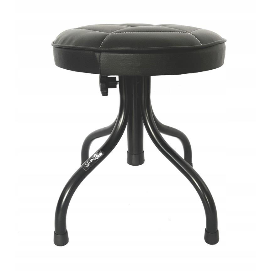 Stołek uniwersalny dla perkusisty, gitarzysty, klawiszowca etc... o regulowanej płynnie wysokości z grubym , miękkim siedziskiem wykonanym ze skóry ekologicznej. Zalecany w szczególności dla najmłodzych muzyków o wzroście do 130 cm