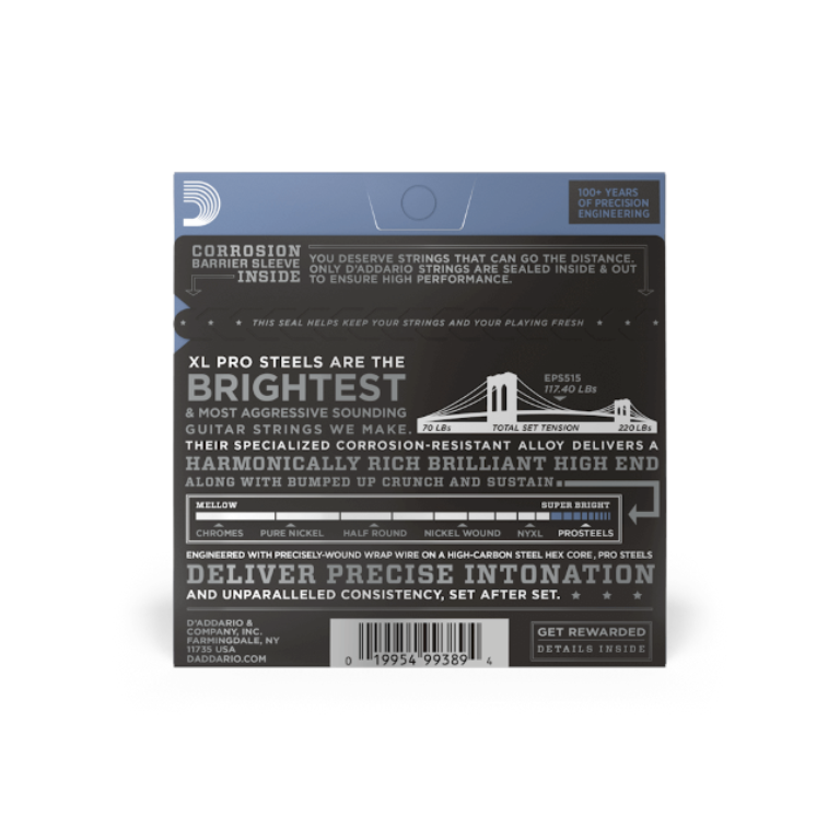 - Podobnie jak wszystkie struny do gitary elektrycznej D’Addario, XL ProSteels są wykonane z naszego zastrzeżonego Hex-Core, co zapewnia idealną intonację, spójne wyczucie i niezawodną trwałość.