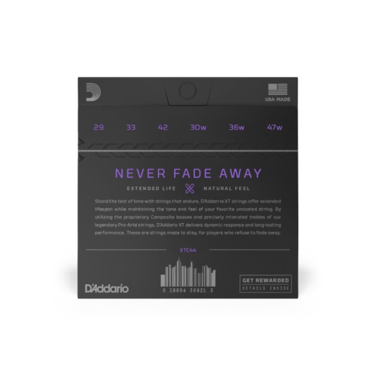 XT to nasze najtrwalsze klasyczne struny, łączące wiekowe doświadczenie D’Addario z nowoczesną technologią powlekania. XT Classical zawiera nasze kompozytowe basy, zbudowane z trwałego rdzenia wielowłóknowego, owiniętego posrebrzaną miedzią i wykończone naszą opatentowaną powłoką XT, zapewniającą odważny, wystający dźwięk i dłuższą żywotność. Uzupełniają je nasze precyzyjne nylonowe struny wiolinowe Pro-Arte, które zapewniają ciepły, łagodny urok, który uwielbiają tradycjonaliści. Ten wyjątkowo twardy zestaw naciągu zapewnia maksymalny opór struny i projekcję.