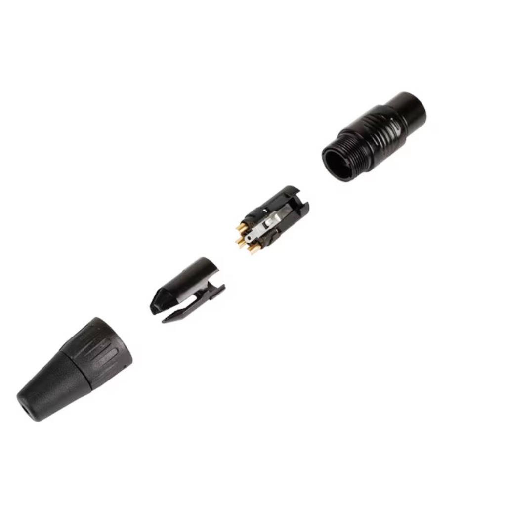 Model RC3F-B został zaprojektowany z myślą o trwałości i wygodzie montażu. Metalowy korpus zapewnia odporność mechaniczną, a ergonomiczny kształt ułatwia szybkie i pewne podłączenie kabla. Prosta konstrukcja sprawia, że złącze jest łatwe w lutowaniu i serwisowaniu.