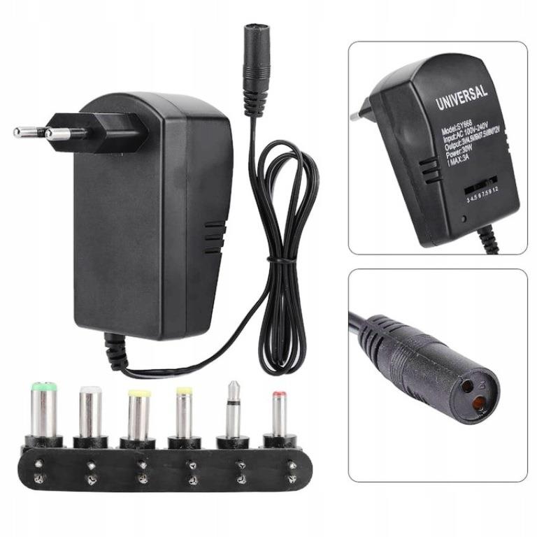 Sześć wtyków w komplecie, dioda LED sygnalizująca prace zasilacza.