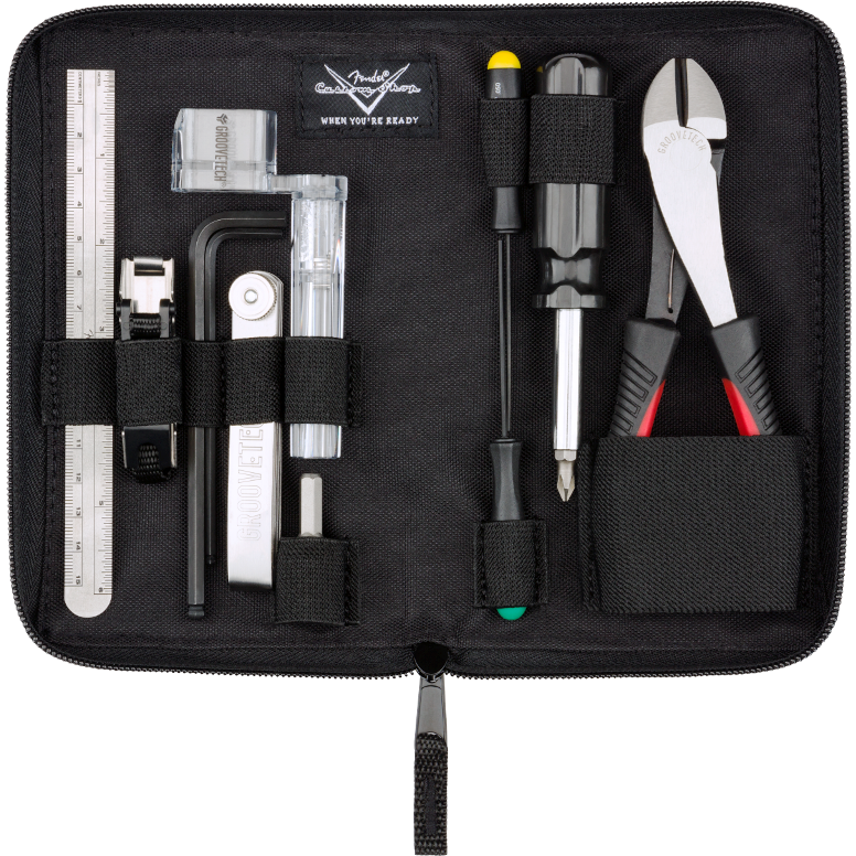 Każdy muzyk potrzebuje podstawowego zestawu narzędzi do ustawiania i regulacji gitar elektrycznych i basów. Zestaw narzędzi Fender Custom Shop Tool Kit ułatwia to dzięki wygodnej kolekcji najbardziej niezbędnych i najczęściej używanych narzędzi — specjalnie zaprojektowanych do instrumentów elektrycznych.